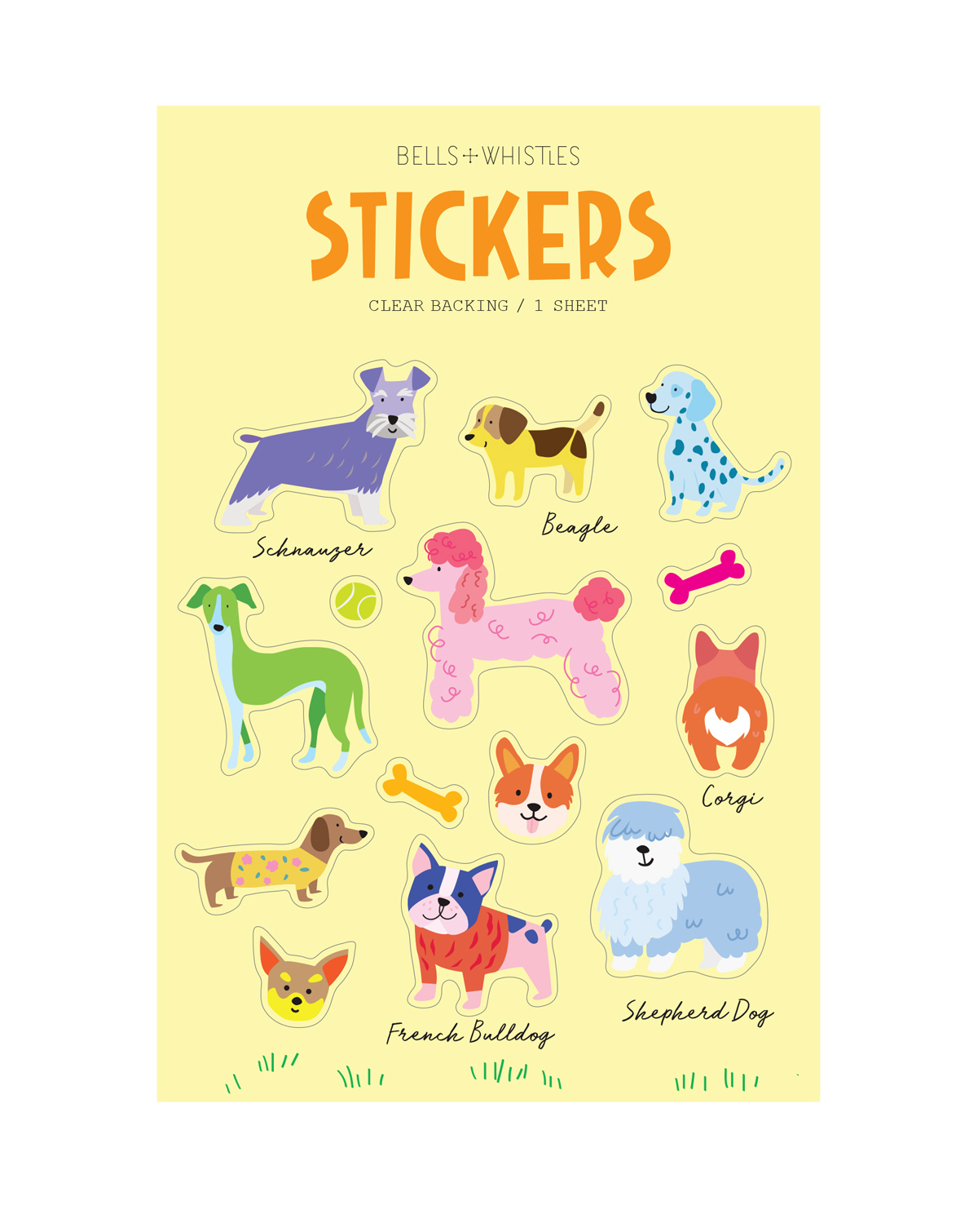 An ode to our favorite pups! This sticker set has a bit of a nostalgic flair and plenty of personality. Made from glossy and durable plastic with clear backing. 1 Sheet /4”x6”/ 14 Stickers