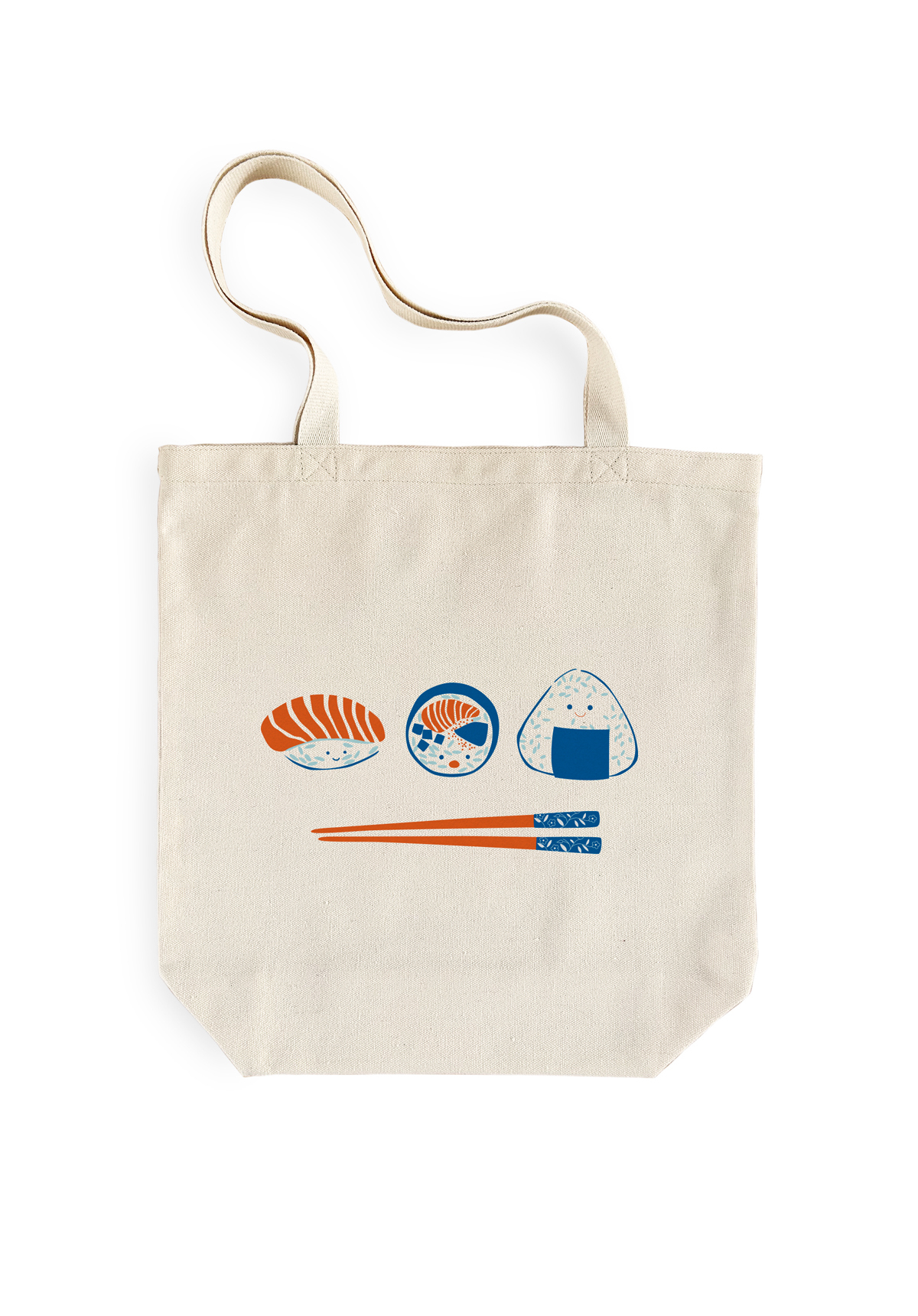 A collection of delicious Japanese eats is featured on this (tasteful) tote. Silkscreened on durable, medium-weight canvas.