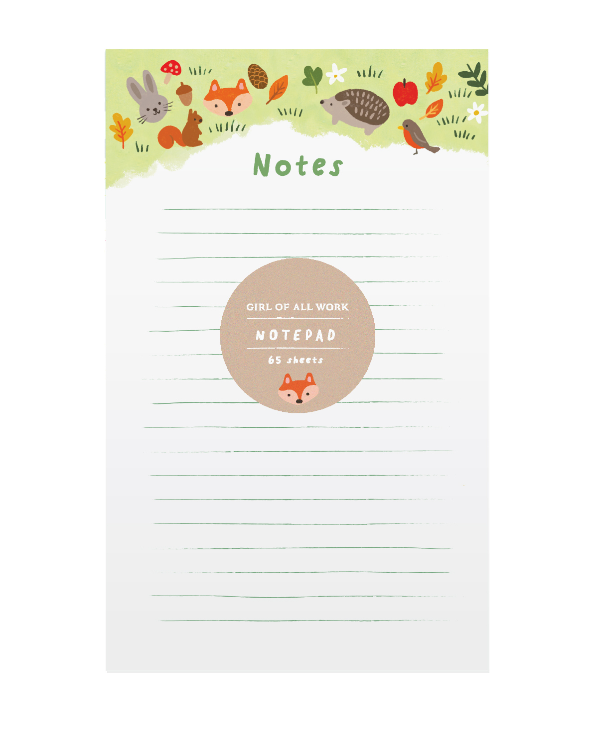Our Forest Animals notepad features adorable illustrations of cute woodland creatures. 65 sheets / 4” x 6 1/2”
