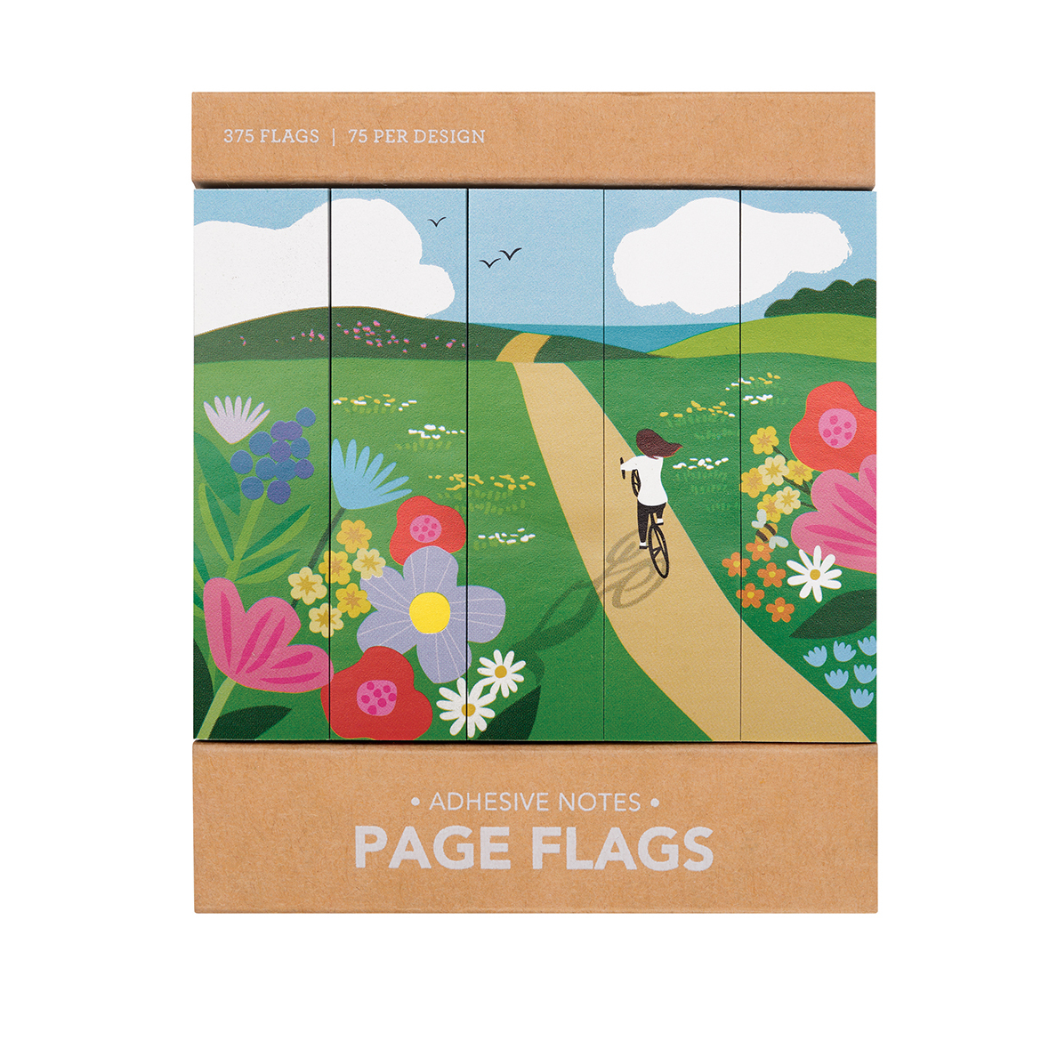 The tranquil beauty of a bike ride is captured in this set of page flags.375 adhesive flags per set/ 75 per design.